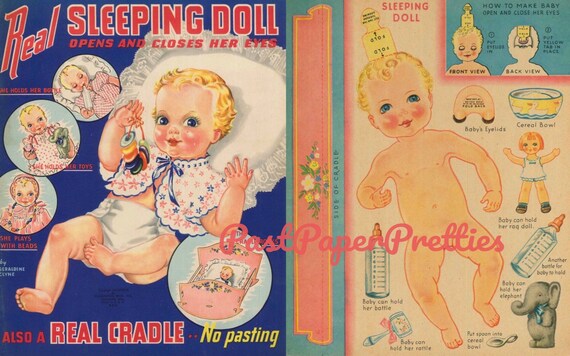 Vintage Paper Dolls Real Sleeping Doll Opens And Closes Her Etsy