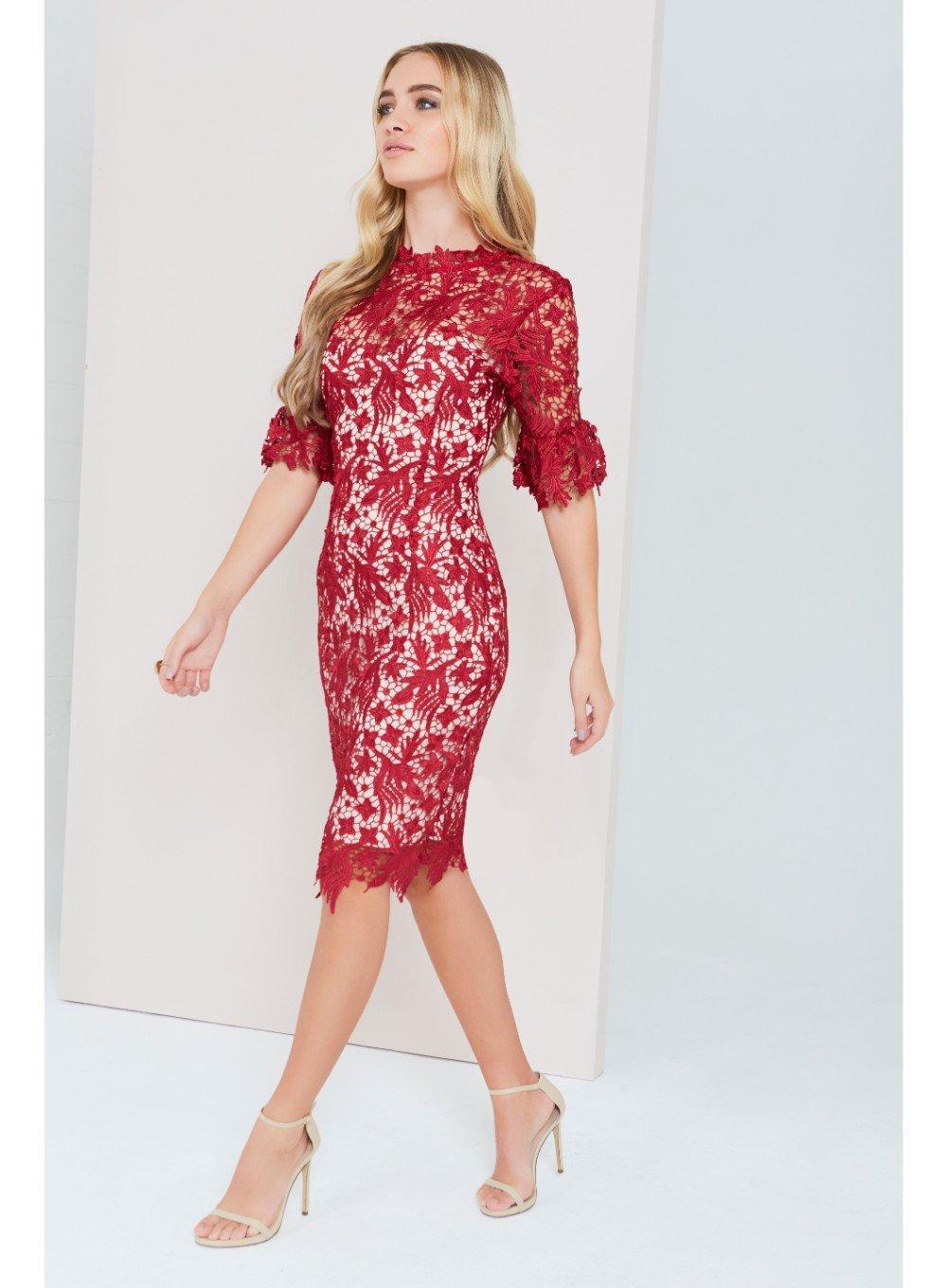 Paper Dolls High Neck Floral Crochet Lace Pencil Dress