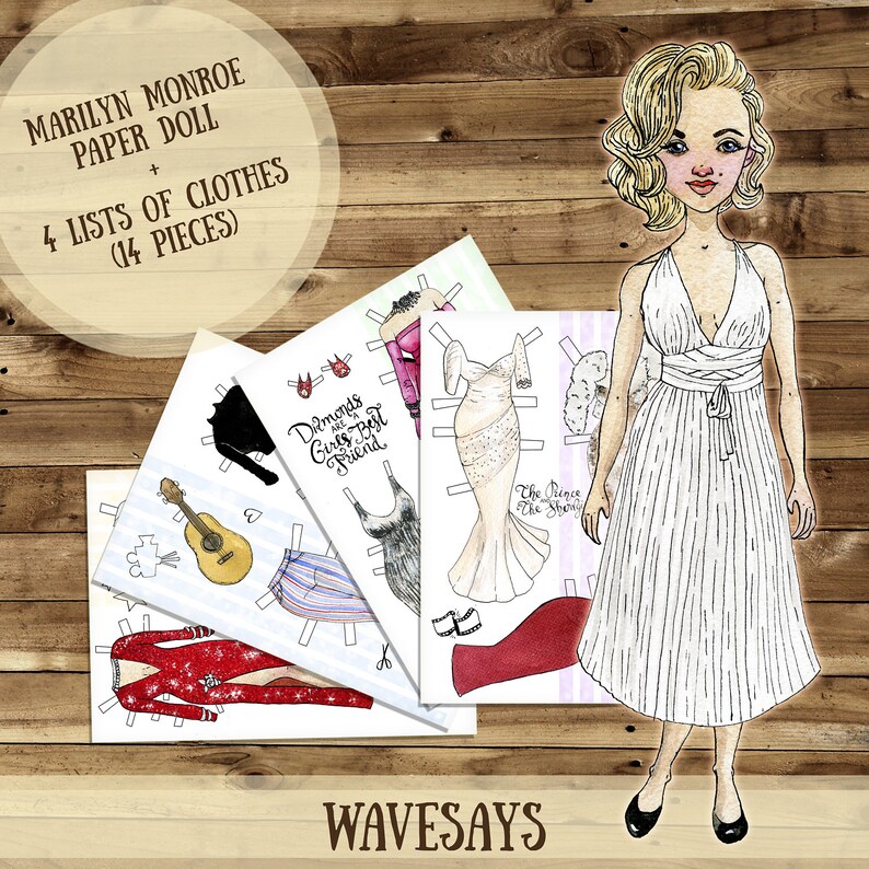 Marily Monroe Paper Doll Printable Paperdoll Instant Etsy